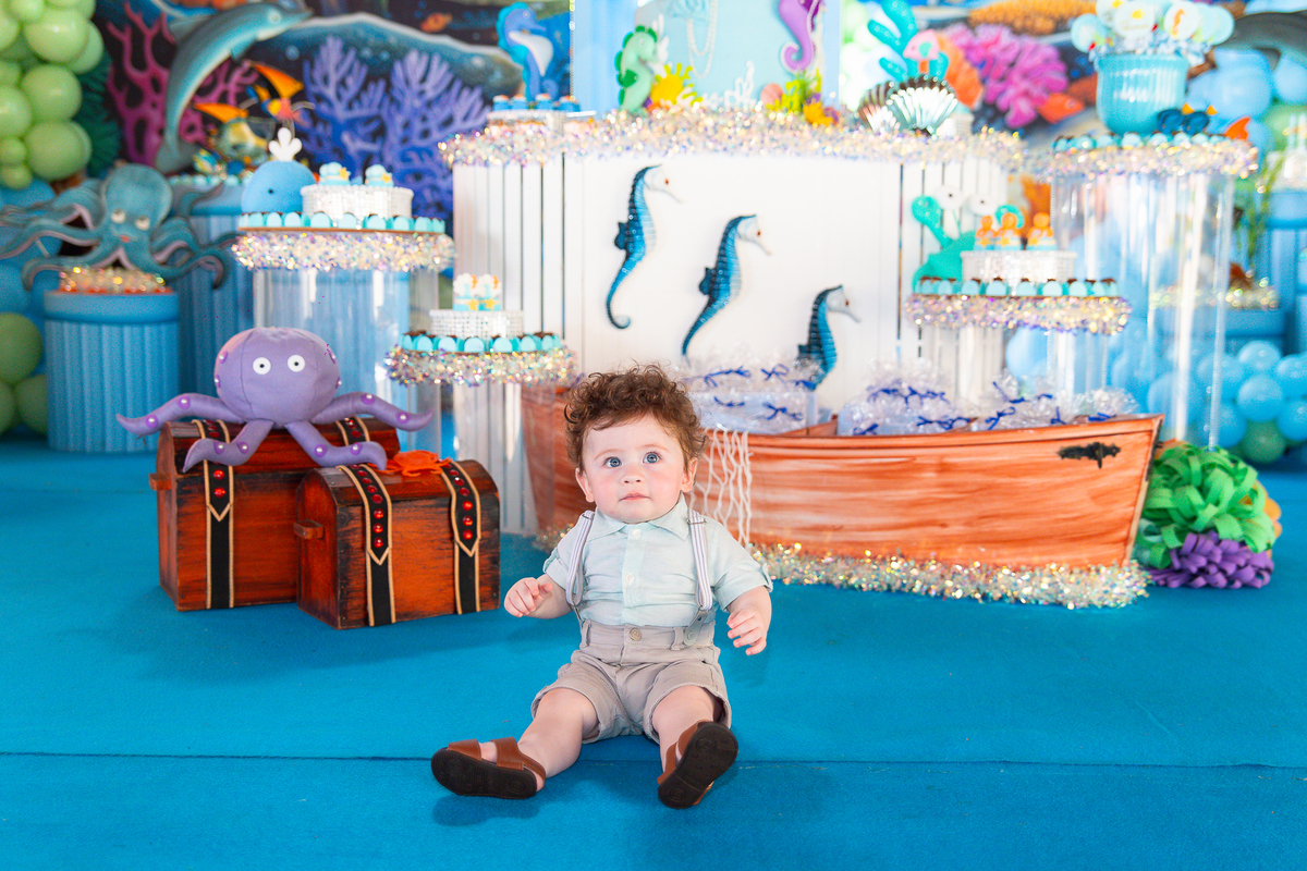 aniversario 1 ano Luana Crispim Fotografia festa infantil Pouso Alegre menino fundo do mar